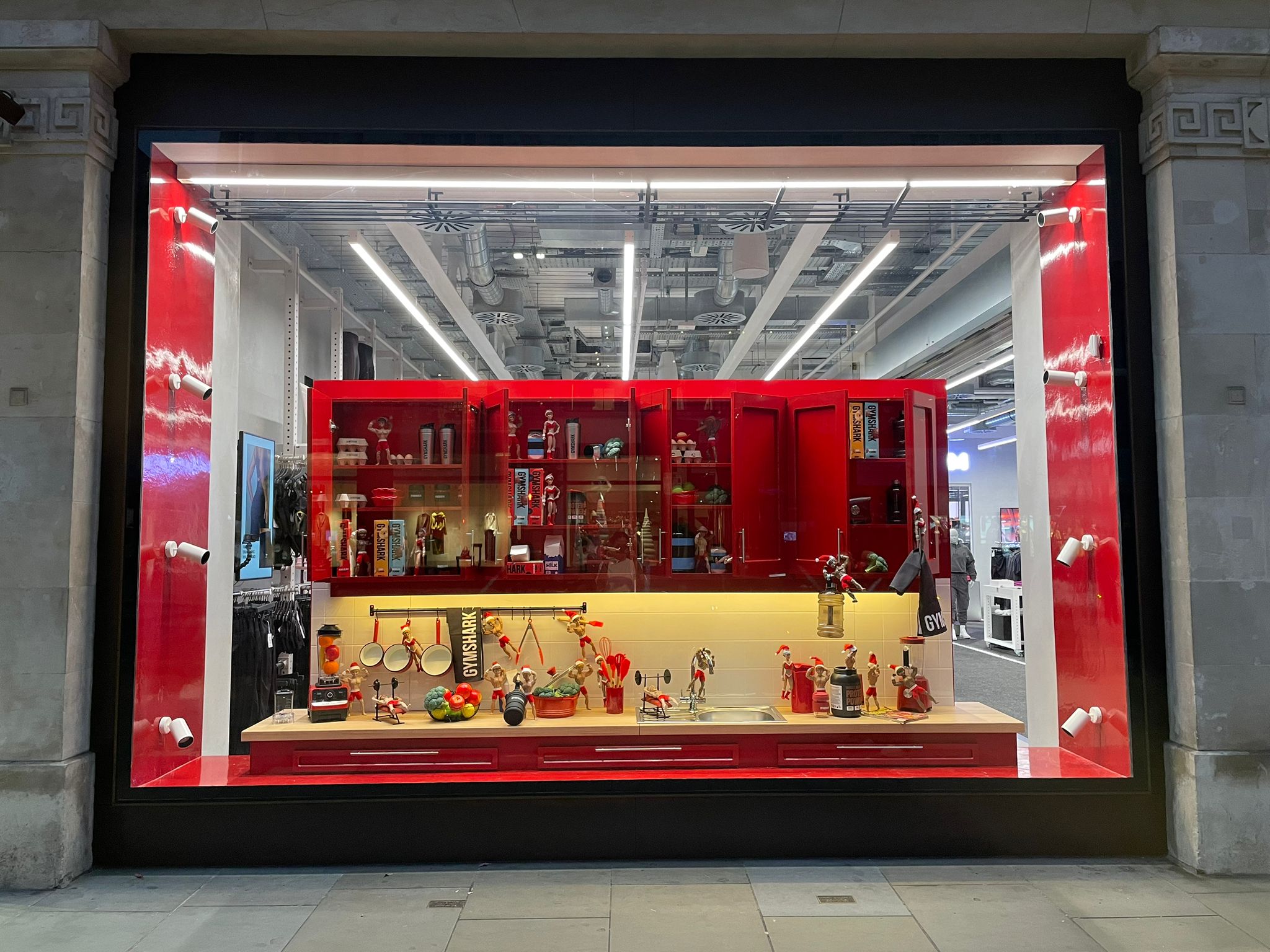 Each window was bespoke designed to embrace the Elflettes from mini to massive. Over 150 mini Elflettes in varying poses were each hand painted and flocked to give their unique features, not one the same. We manufactured 6 x mannequin sized Elflettes for 3 stores across the UK.