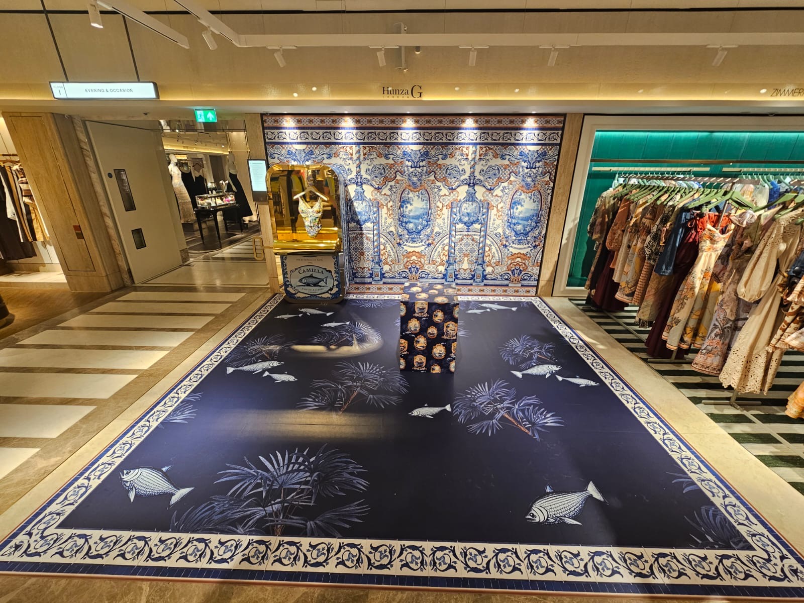 From concept through to build and installation, we translated Camilla’s maximalist visual language into a bold, layered retail experience that felt both transportive and at home within the grandeur of Harrods.