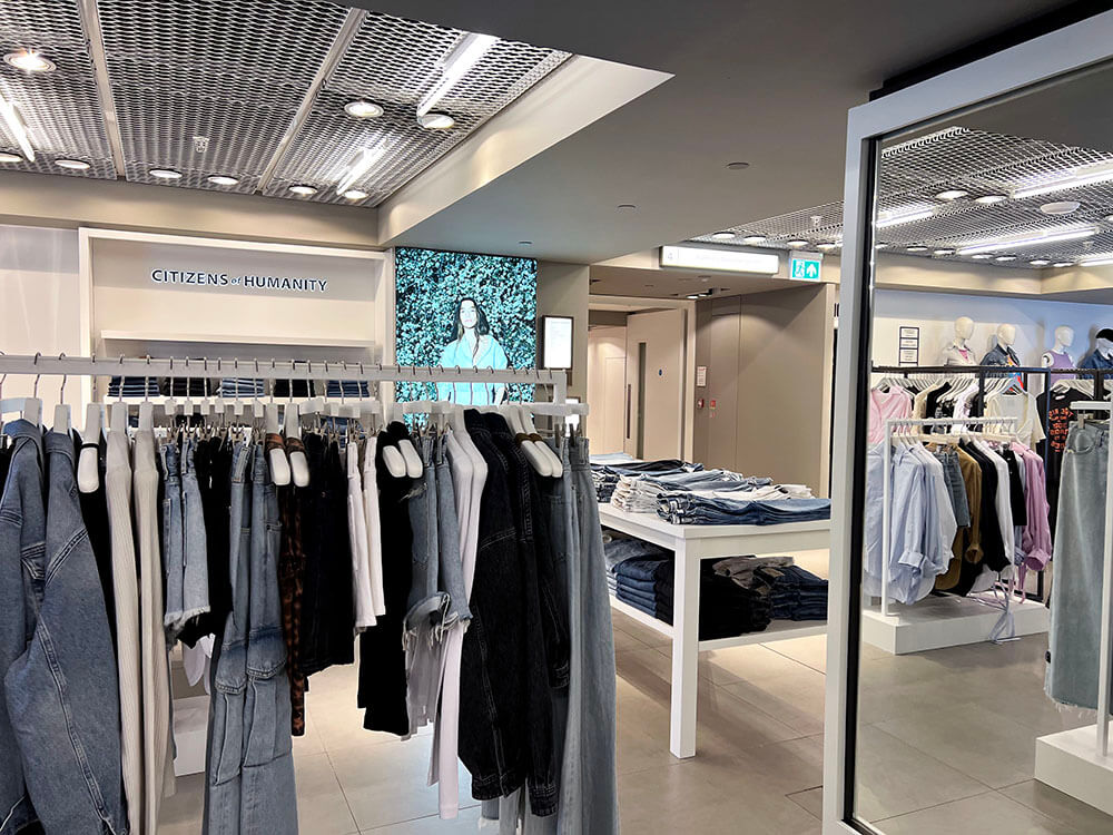 Creating a clean, elevated retail environment, we designed and built a pop up space for Citizens of Humanity at Harrods.