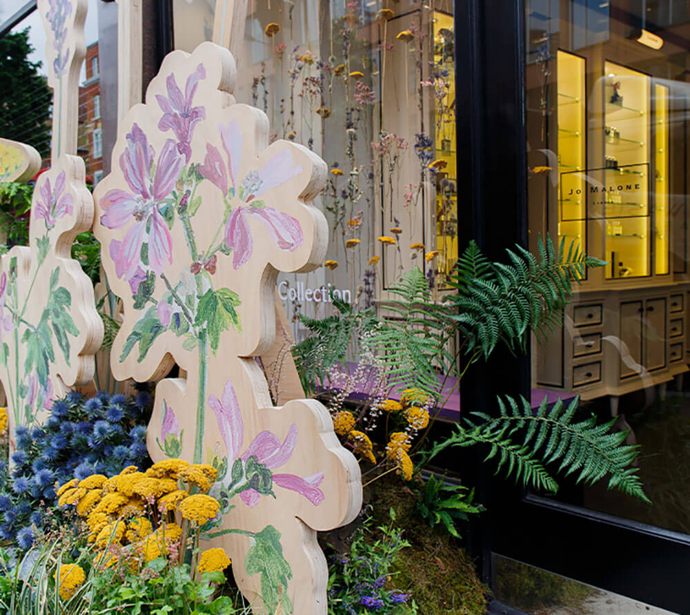 Transforming a London streetscape into a cinematic vision of the Scottish Highlands, we created a series of oversized floral props for Jo Malone London’s Chelsea in Bloom installation, which was awarded Bronze at the Chelsea in Bloom floral art show.