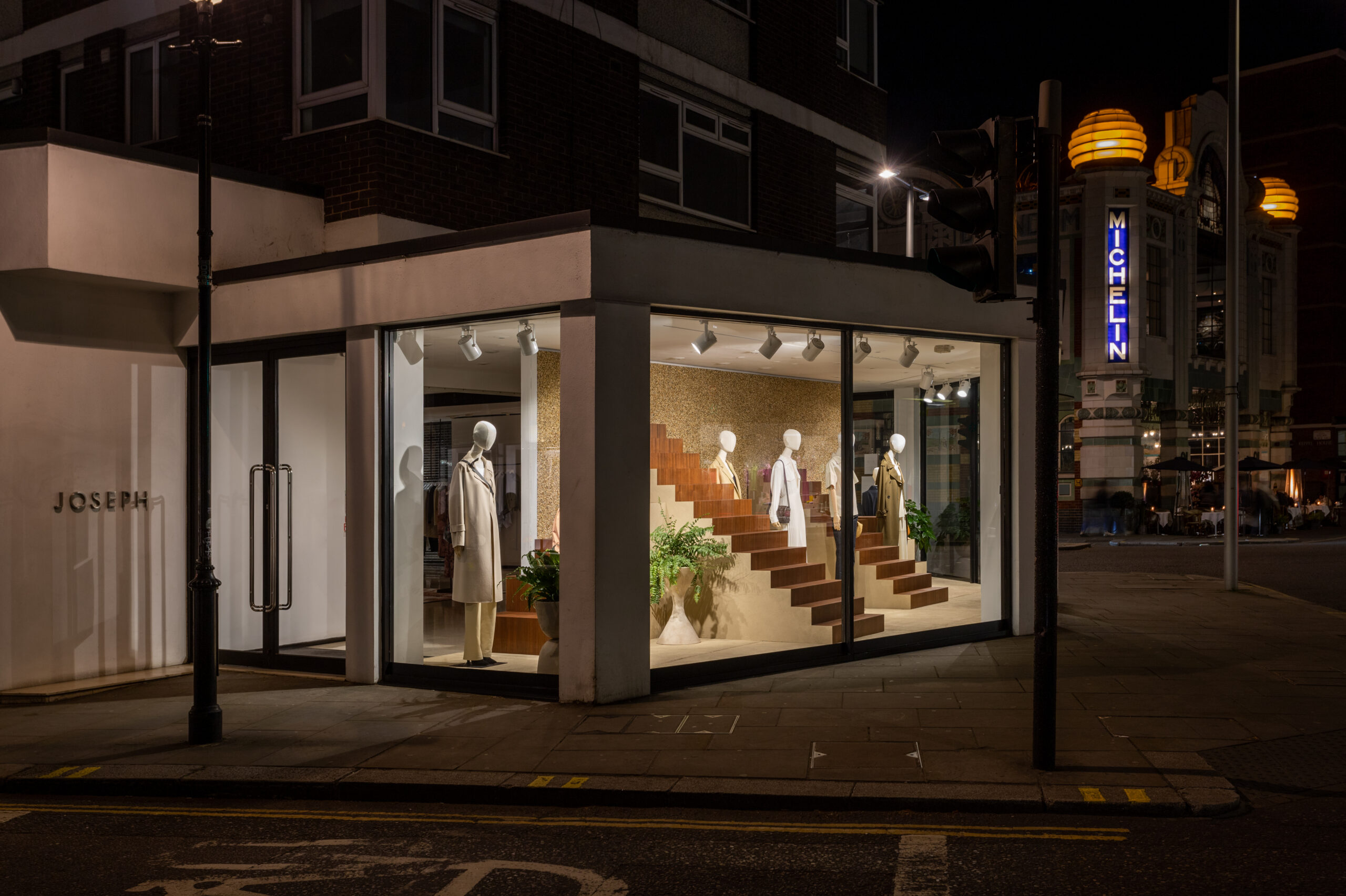 Creating a striking architectural moment for Joseph’s Fulham Road flagship, we designed and manufactured a series of sculptural staircase installations to animate the window space.