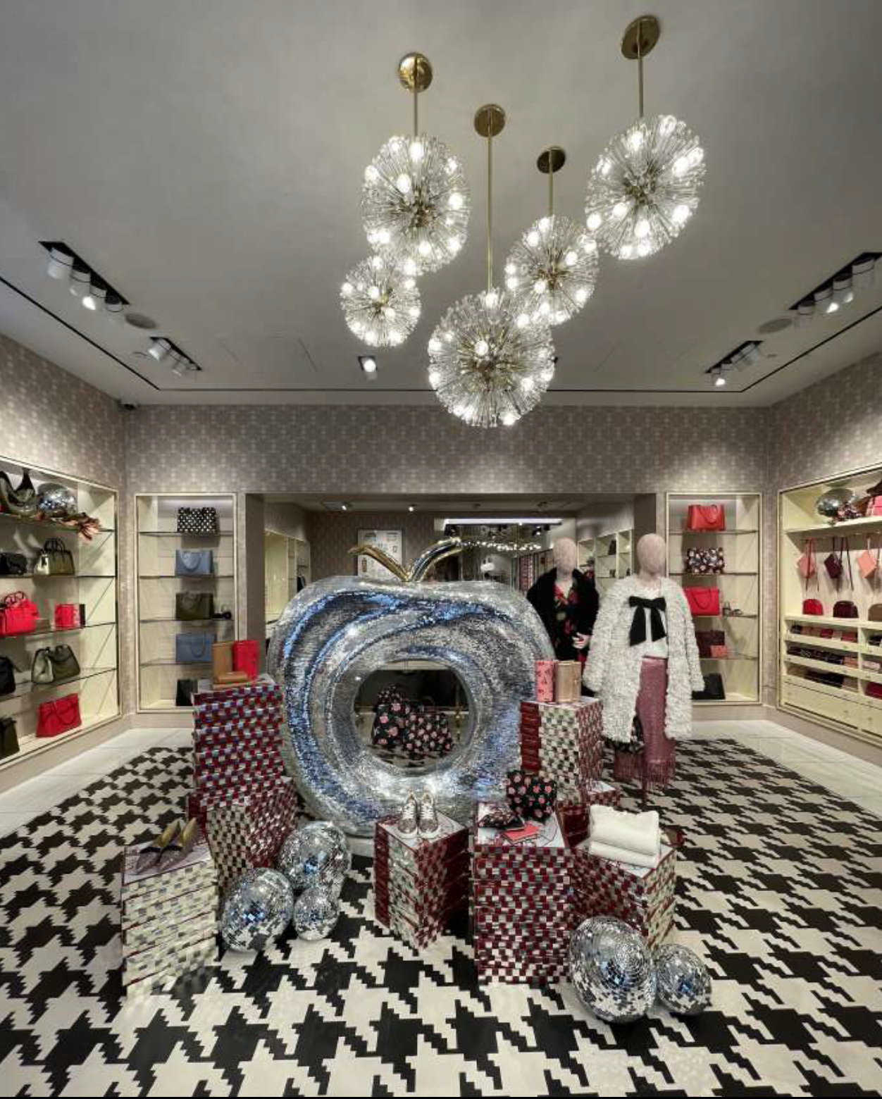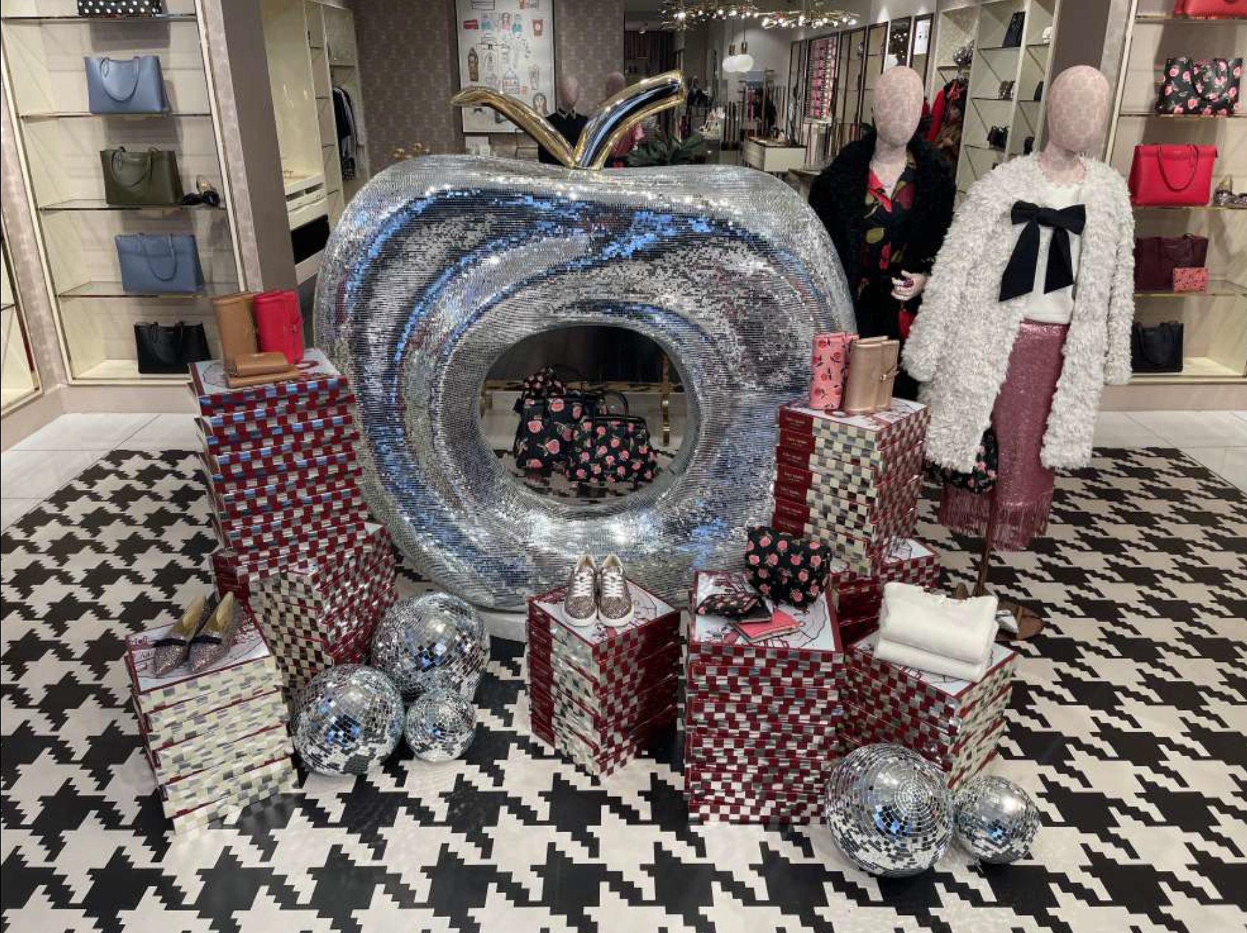 Bringing a touch of disco glamour to Kate Spade’s Autumn/Winter windows, we transformed their iconic apple props into dazzling statement pieces.