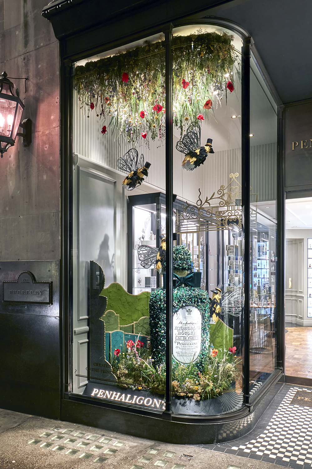 We transformed the windows of Penhaligon’s Regent Street store into a storybook garden to celebrate Highgrove Bouquet, crafting an enchanting display that invited passersby into the fragrance’s botanical world.