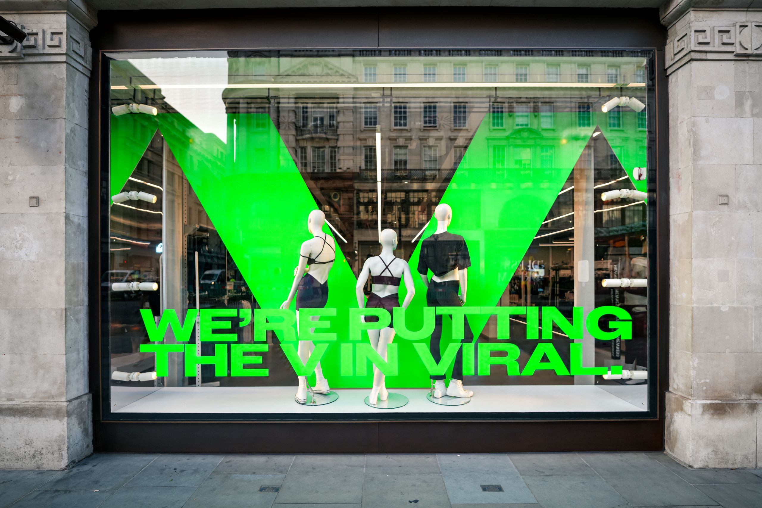 What sets us apart is the way print fits seamlessly into our broader production process. Because we design, build, and install full window schemes and pop-ups, we understand exactly how printed elements need to interact with 3D builds, lighting and materials. We guide clients on the right finishes, durability, legibility, and scale, taking into account factors like reflections on glass, heat from lighting or day-to-night visibility.